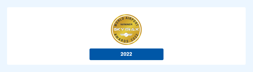 The award, granted in 2021, recognises airports that were nominated by passengers for providing the highest health, hygiene and safety protocols during the pandemic. Passengers rated the airport's standards against COVID-19 in all key categories, including: signage and social distancing, correct use of face masks, visibility and availability of hand sanitiser, hygiene procedures at security checkpoints, cleanliness in the terminal and in the toilets.
