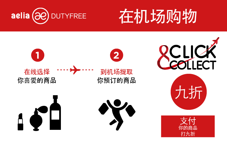 当日登机前前往位于机场E区的Aelia Duty Free店收银台直接领取商品
