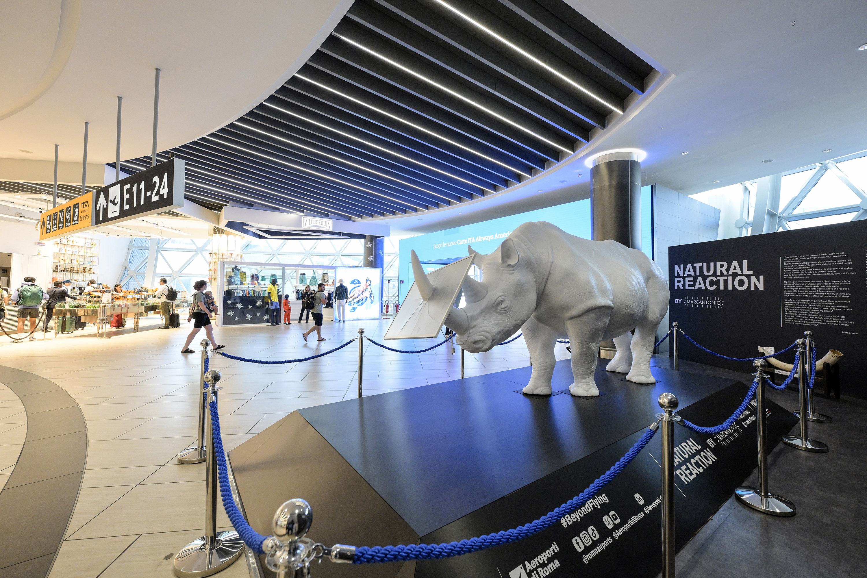 La sua presenza nel cuore del Terminal 1 rappresenta un gesto artistico forte, immersivo e contemporaneo, pensato per accogliere i viaggiatori con un invito a scoprire un’Italia viva, che affonda le sue radici nella storia ma continua a generare innovazione e creatività.