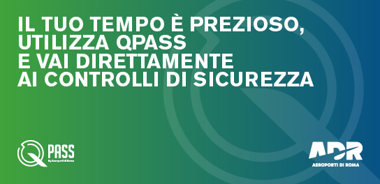 Acquistando i tuoi voli da/via Roma su FlyandvisitRome.com, ciascun passeggero avrà integrato nel proprio biglietto il servizio QPass. Goditi l'accesso prioritario ai controlli di sicurezza e scopri l'Aeroporto di Fiumicino.