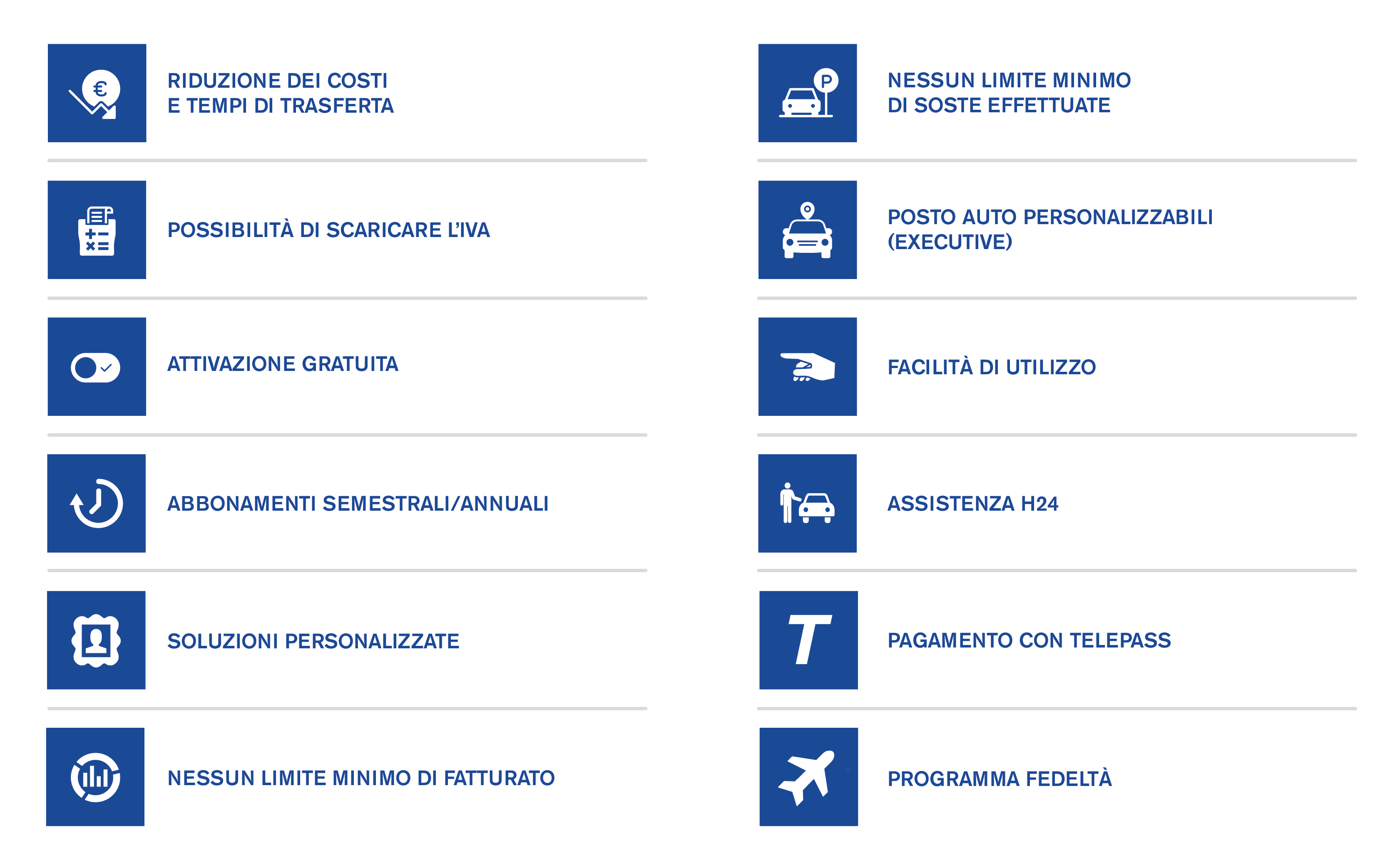 Chi sceglie easy Parking si affida all’unico parcheggio ufficiale di Aeroporti di Roma, il top della sicurezza e il massimo della comodità per la vicinanza ai Terminal. Grazie alla convenienza rispetto alle tariffe di un servizio taxi standard, easy Parking è la soluzione ideale per ottimizzare i costi delle trasferte ed offre tanti vantaggi pensati appositamente per le aziende: